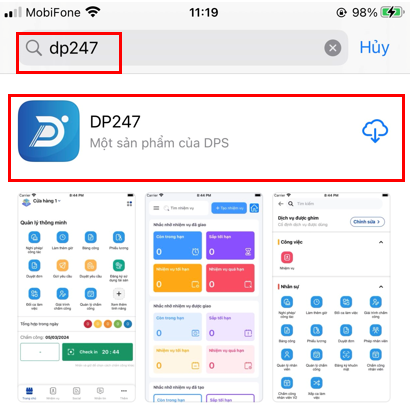- Đối với hệ điều hành IOS, bạn vào App Store nhập dp247 để tìm kiếm và tải app.