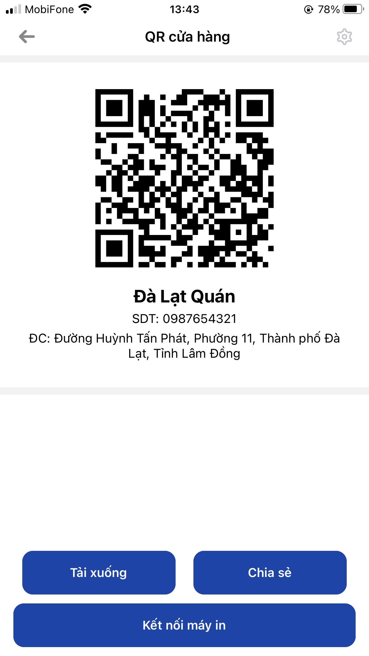- Nút "Tải xuống": tải file ảnh QR cửa hàng xuống