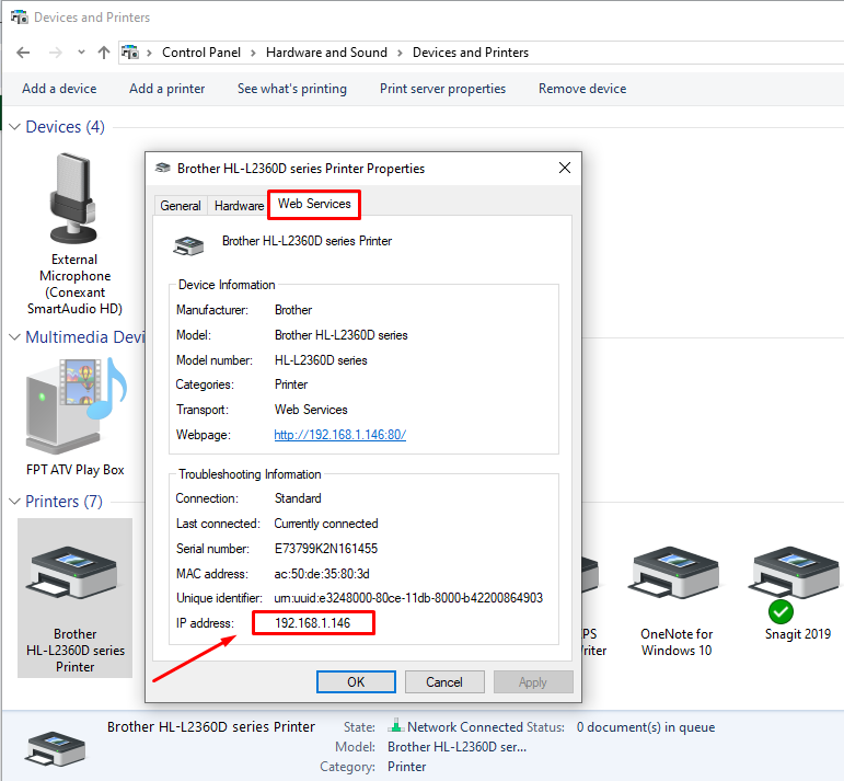 Cách lấy địa chỉ IP máy in đã được thêm trên máy tính