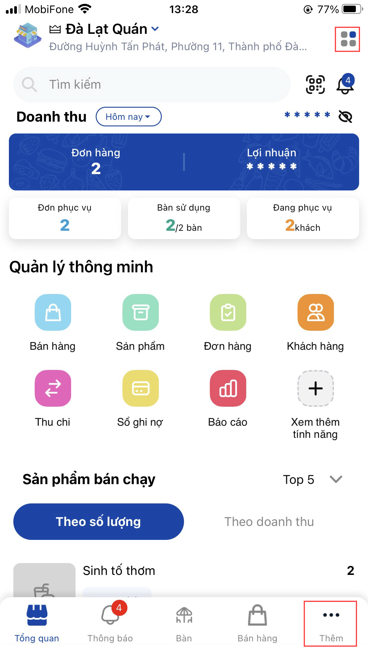 Để cập nhật thông tin cửa hàng trên giao diện màn hình chính sau khi đăng nhập xong bạn chọn: