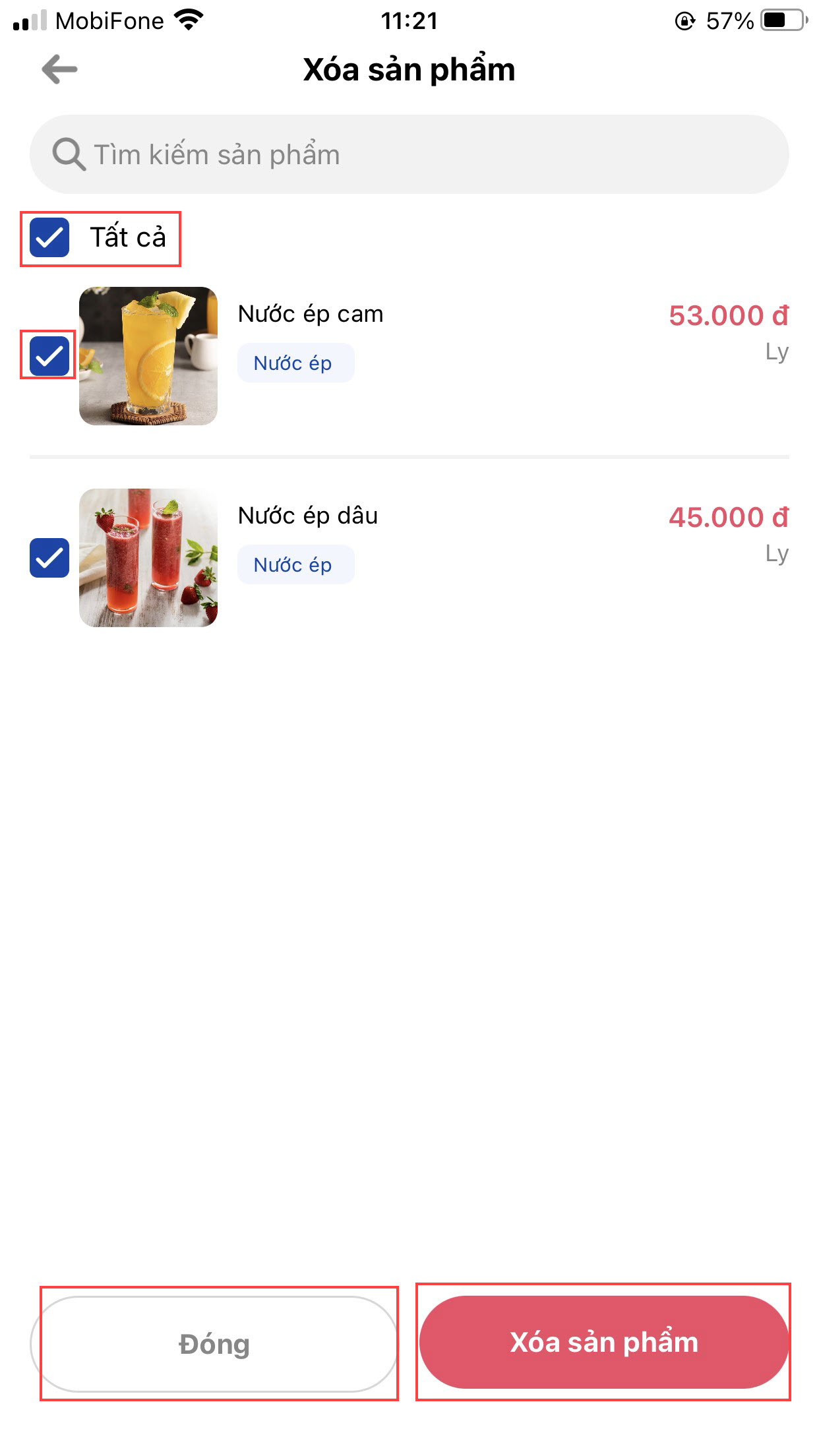 Bước 2: Tại mỗi dòng sản phẩm bạn tick vào ô