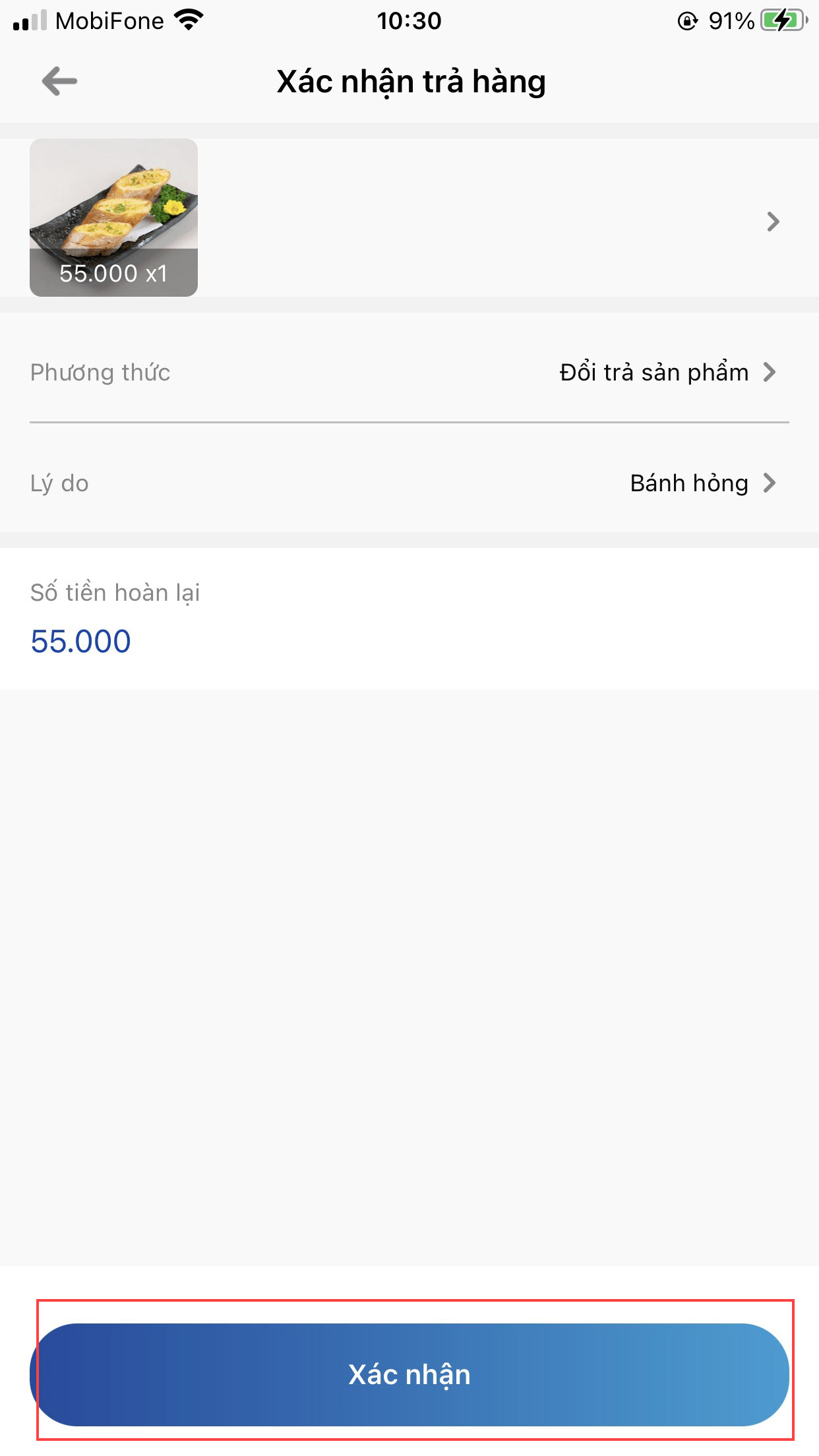 Bước 4: Xác nhận trả hàng > chọn nút "Xác nhận"