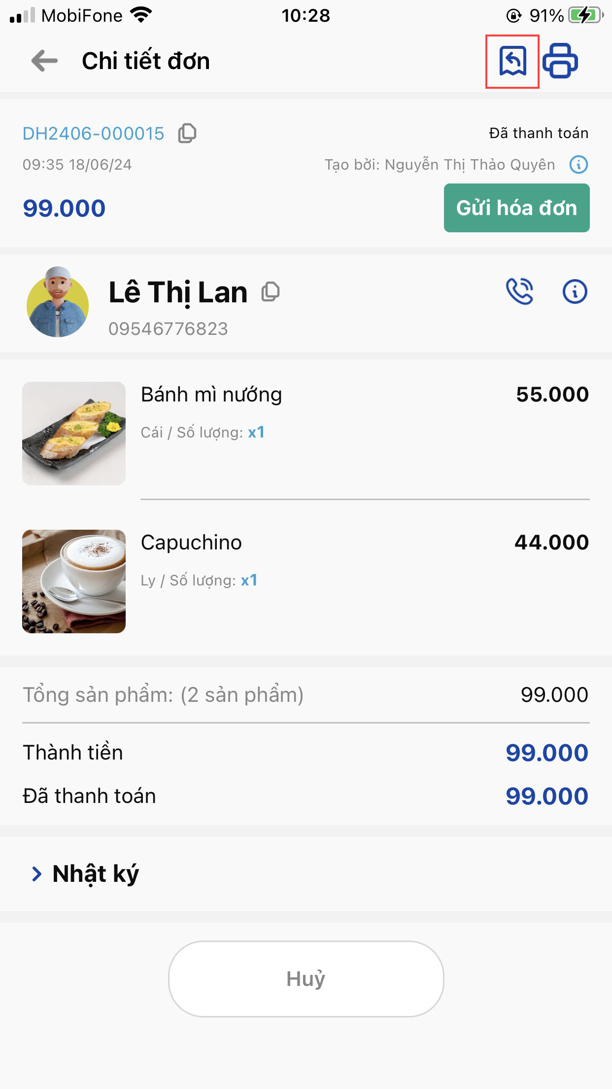 Bước 1: Tại chi tiết mỗi đơn hàng bạn chọn nút