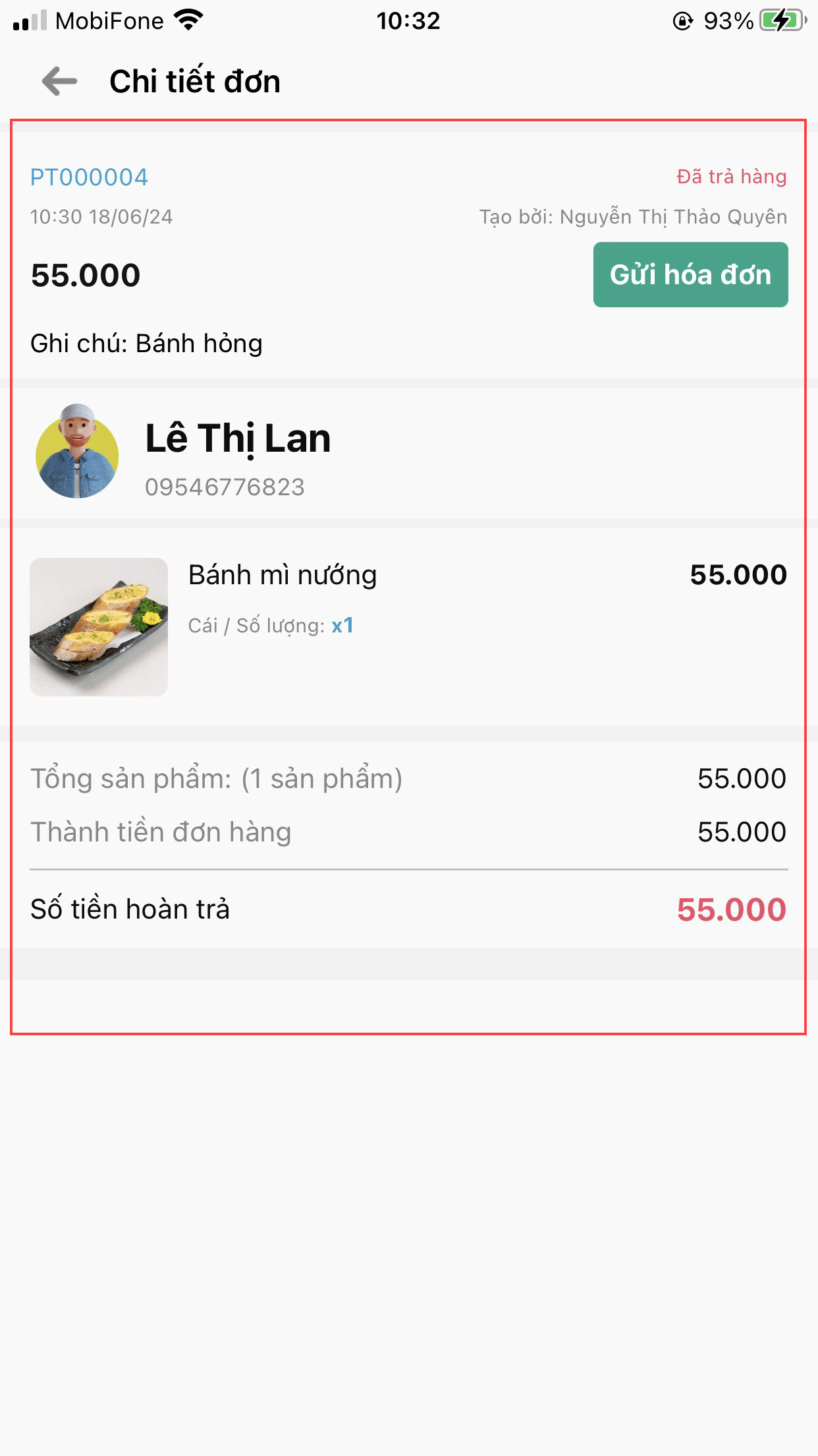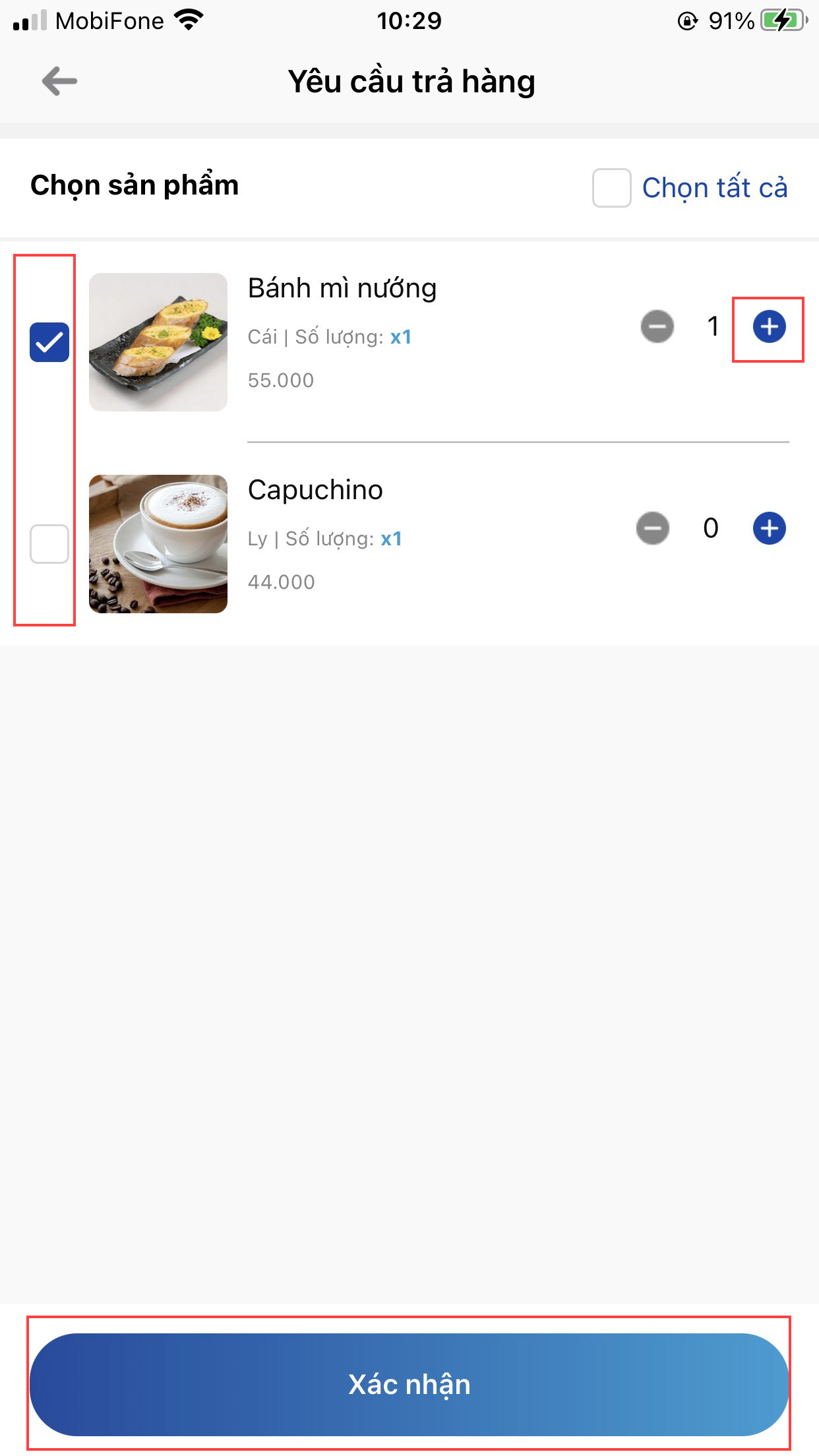 Chọn nút "Xác nhận" để hoàn tất trả hàng.