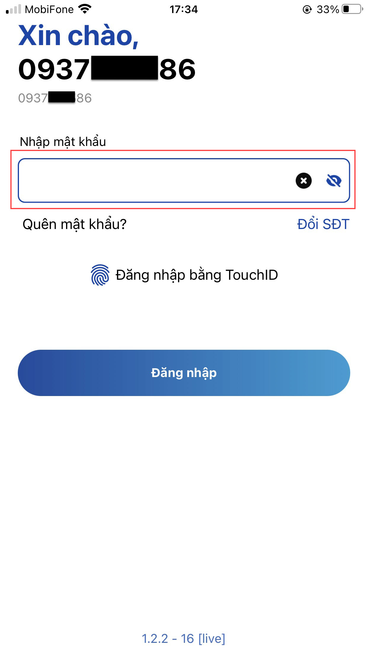 Bước 8: Nhập mật khẩu vừa tạo mới và chọn nút "Đăng nhập"