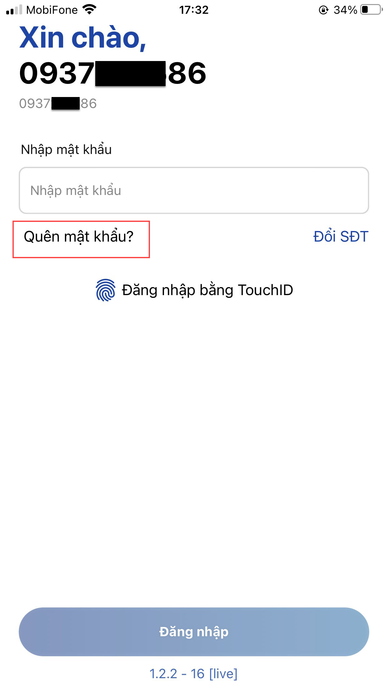 Bước 2: Xác nhận gửi qua SDT của bạn