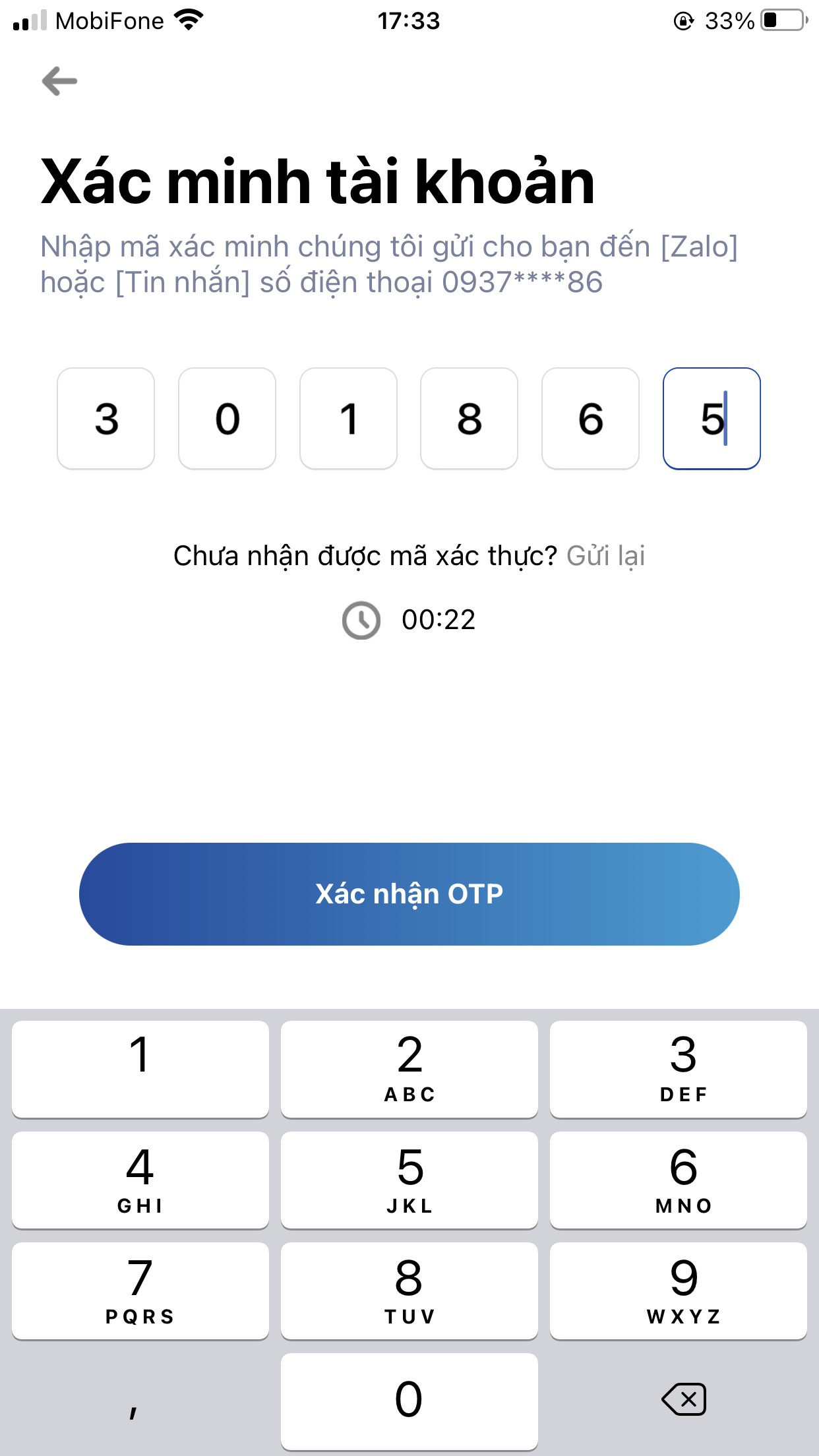 Bước 4: Dán mã vào và chọn nút "Xác nhận OTP"