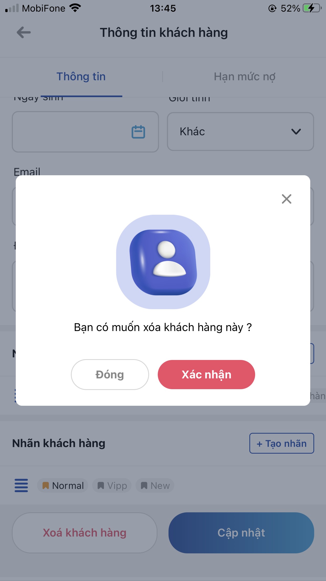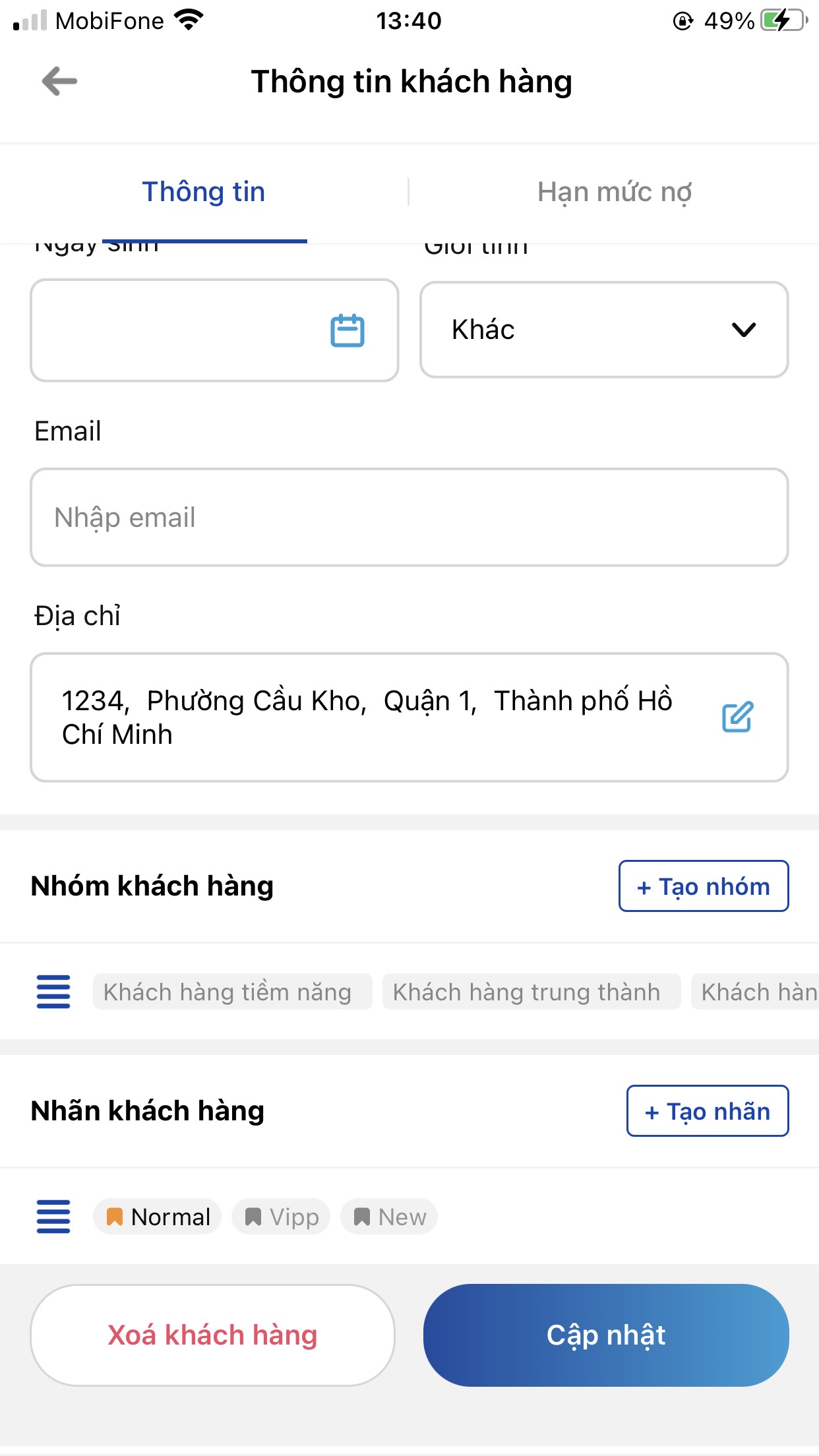 - Tại trang chi tiết khách hàng, bạn chọn nút