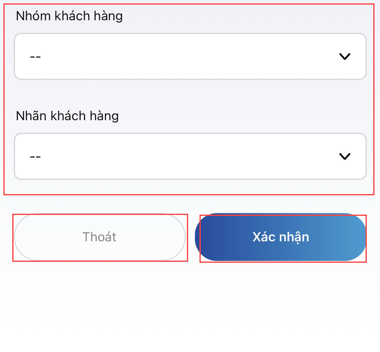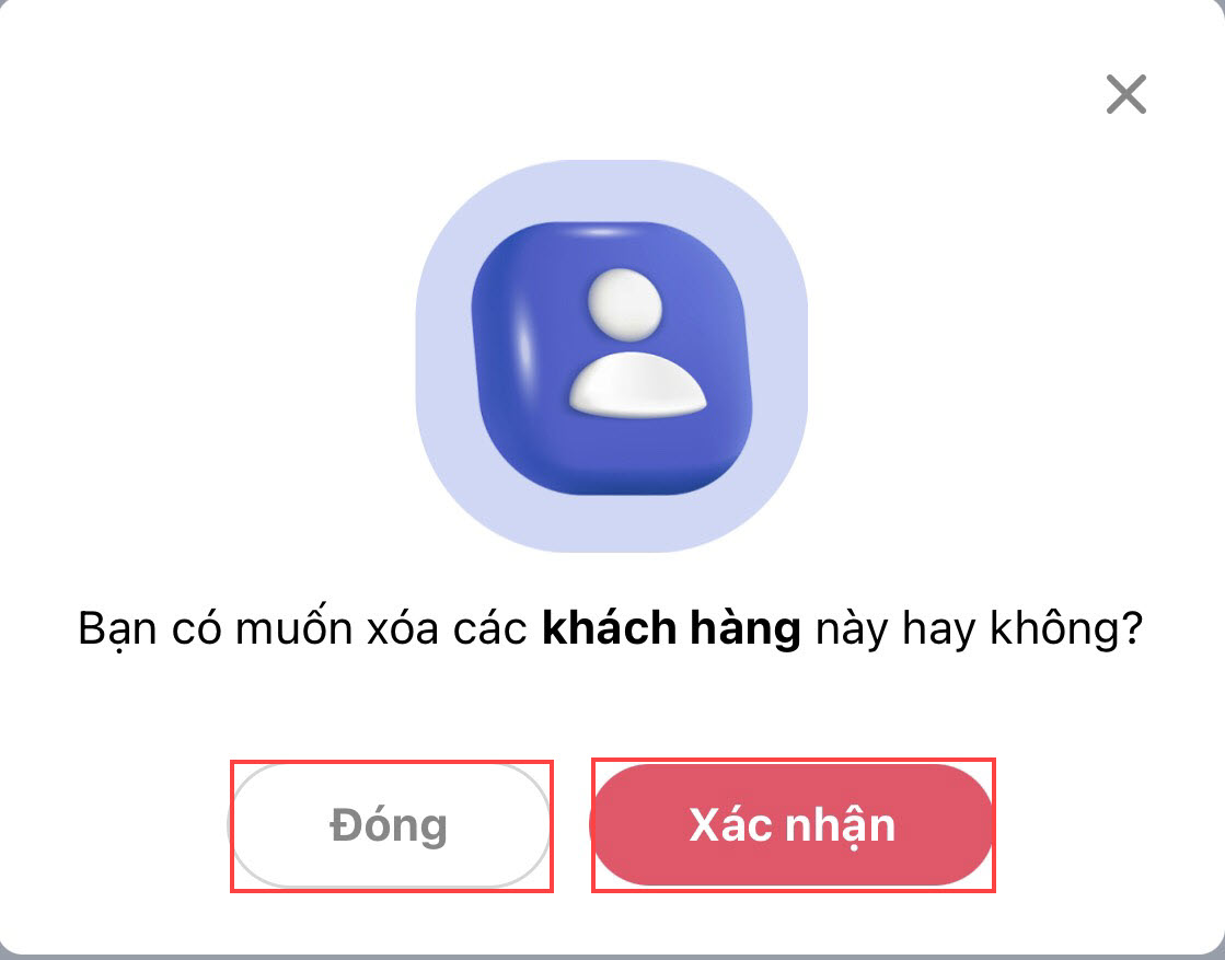 Nút "X" để đóng giao diện nhóm khách hàng lại.