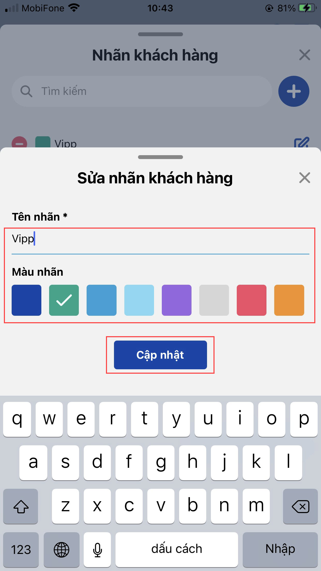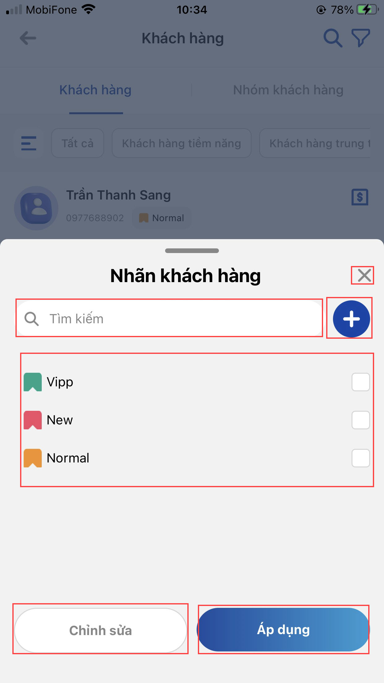 1.2.2 Chỉnh sửa nhãn khách hàng