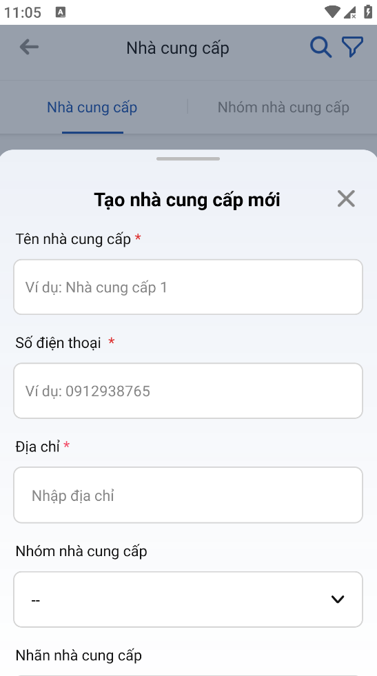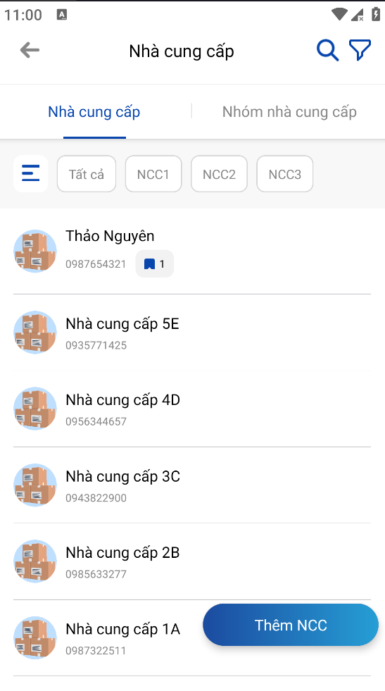 trên giao diện màn hình chính. Hệ thống sẽ hiển thị màn hình nhà cung cấp tab Nhà cung cấp.