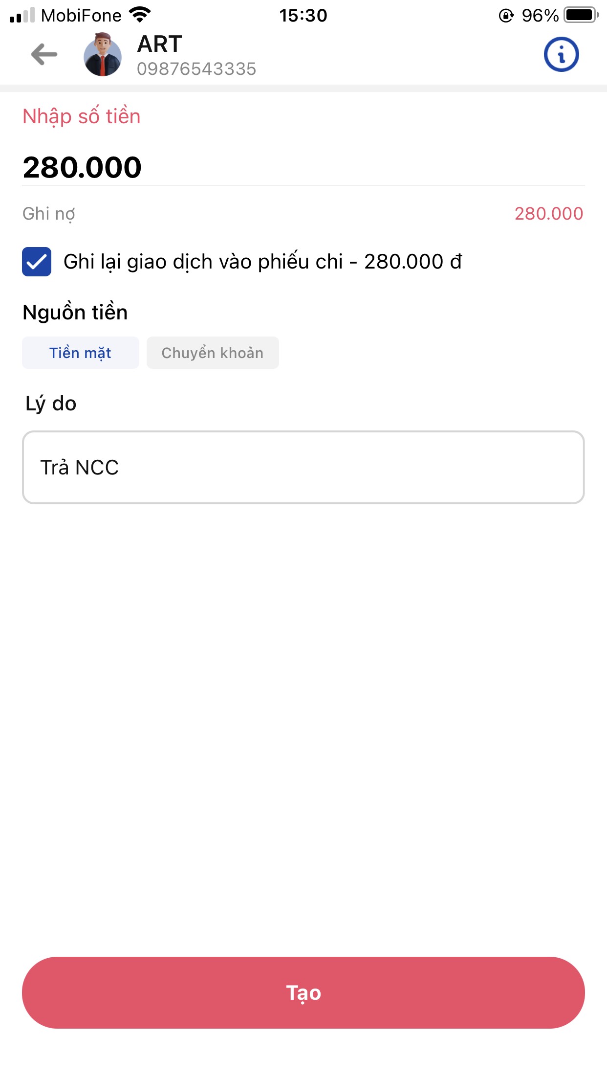 - Check ghi lại giao dịch vào phiếu chi (nếu có)