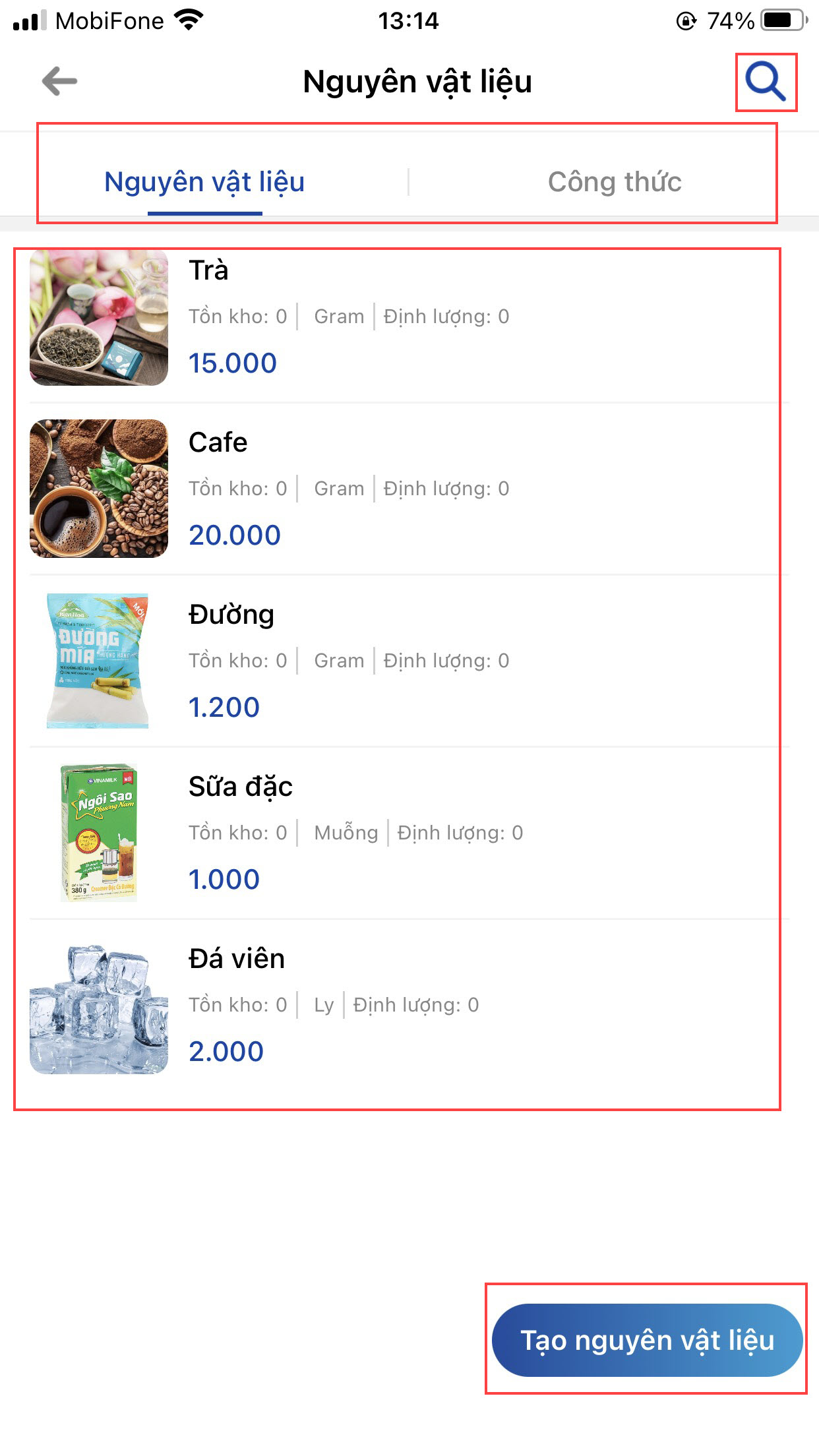 Quản lý nguyên vật liệu và công thức tạo sản phẩm từ nguyên vật liệu