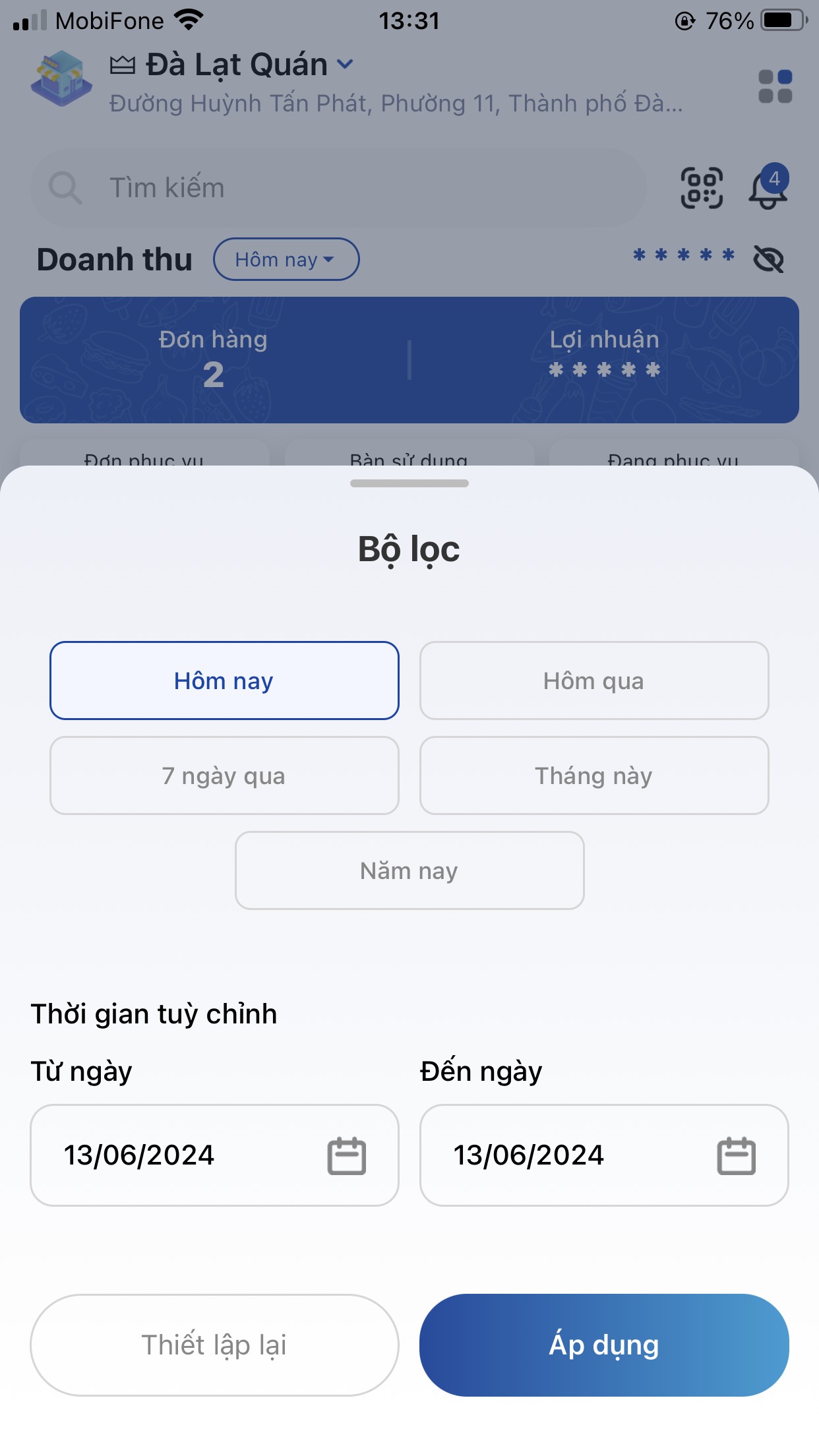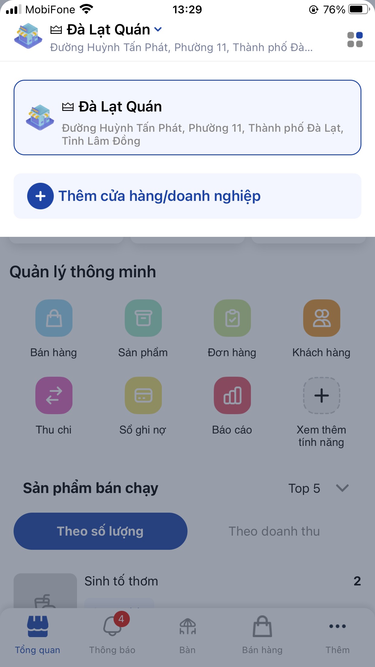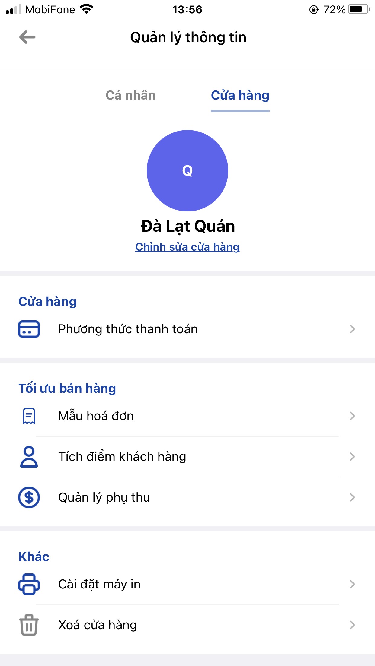 Giao diện danh sách cửa hàng/doanh nghiệp hiện có