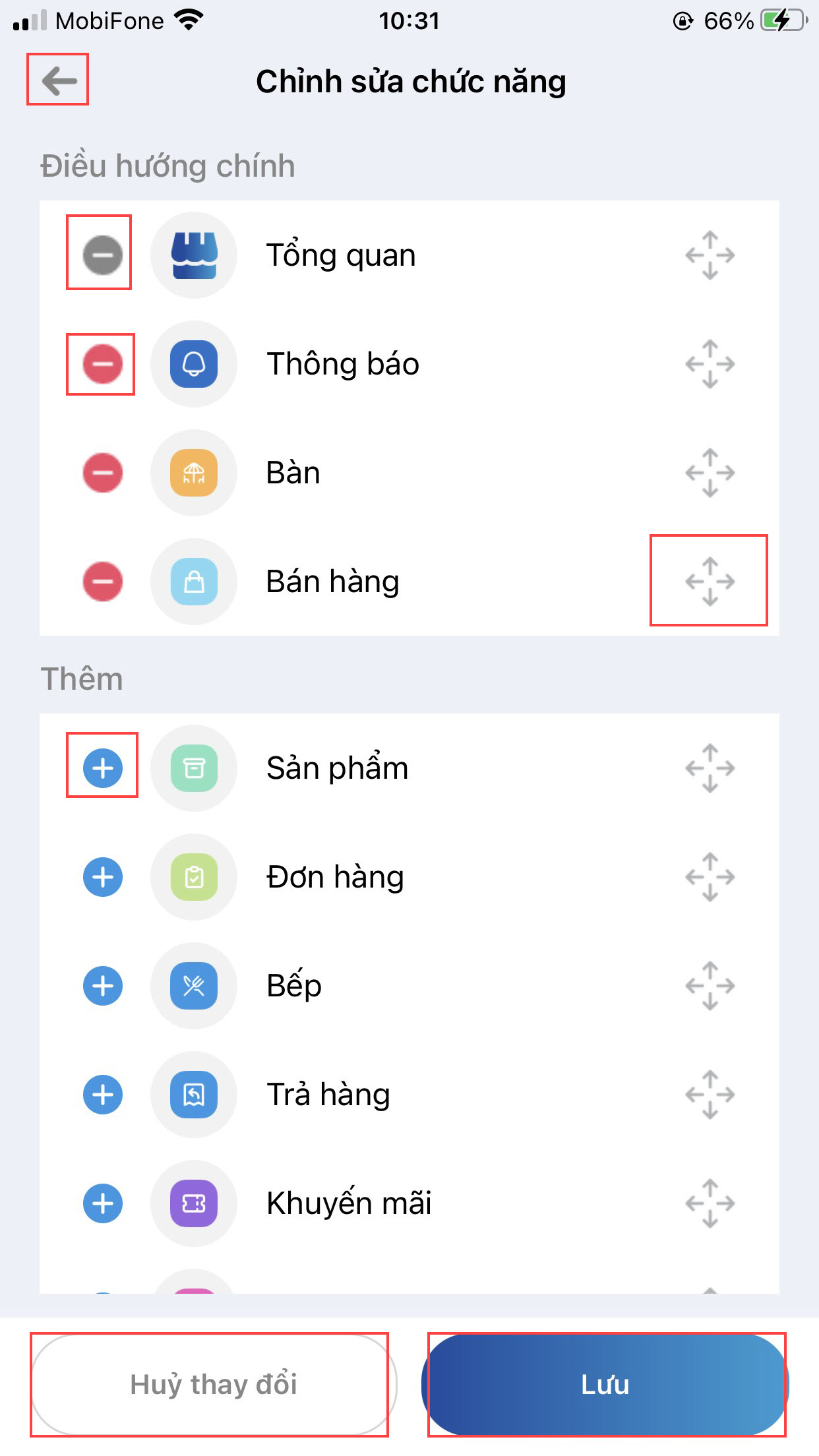 : ấn vào giữ và kéo di chuyển lên xuống giữa các chức năng trong khung - Nút