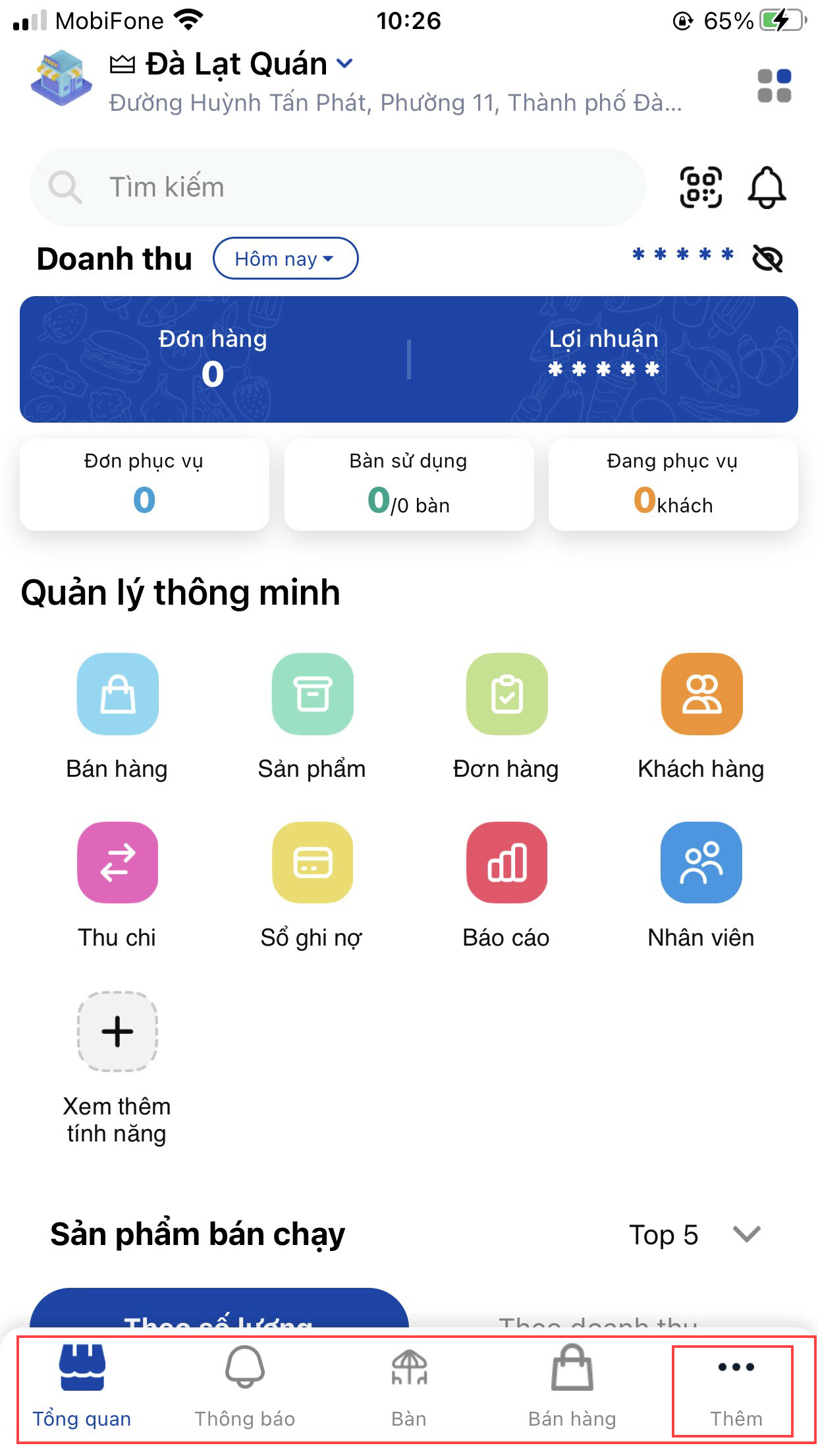 Bước 1: Để thiết lập thanh chức năng tiện ích ở cuối trang, bạn chọn nút "Thêm"
