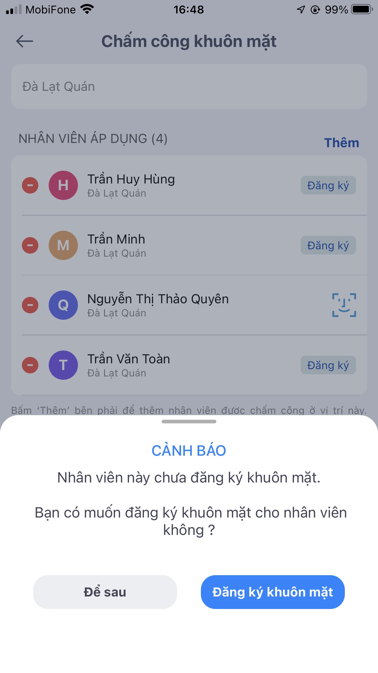 Bước 10: Đăng ký khuôn mặt cho nhân viên (nếu muốn) hoặc để nhân viên vào app tự đăng ký