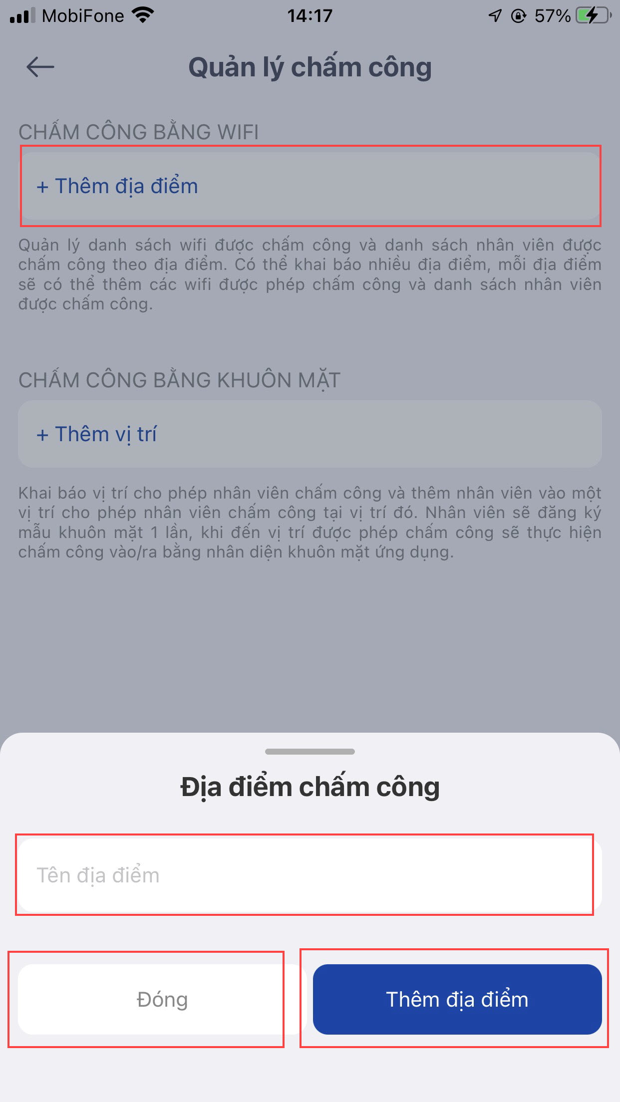 Bước 1: Tab chấm công bằng khuôn mặt, Bạn chọn nút "+Thêm vị trí"