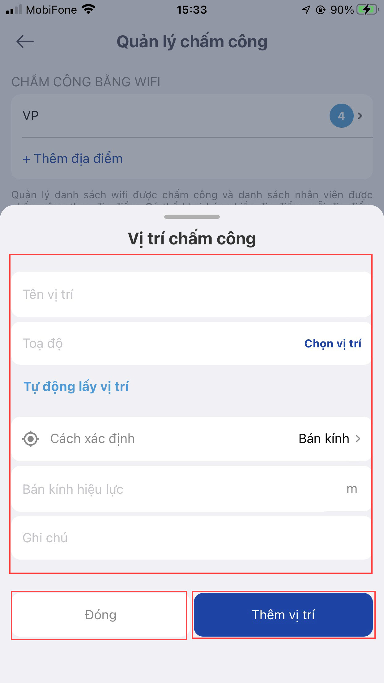 - Nút "Tự động": app sẽ tự động ưu tiên hình thức chấm công phù hợp nhất trong 2 hình thức trên.