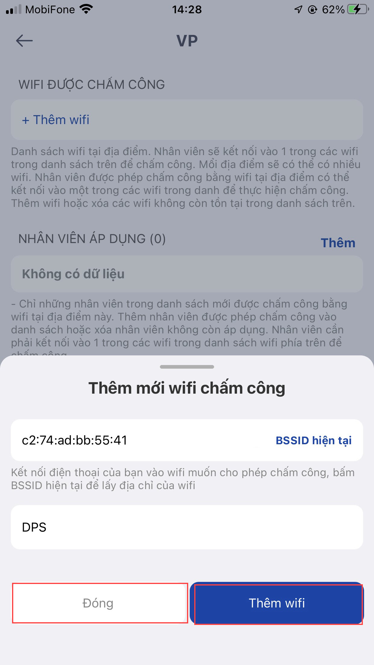 Bước 9: Tương tự phần 1. Thiết lập chấm công bằng wifi >> Bước 9