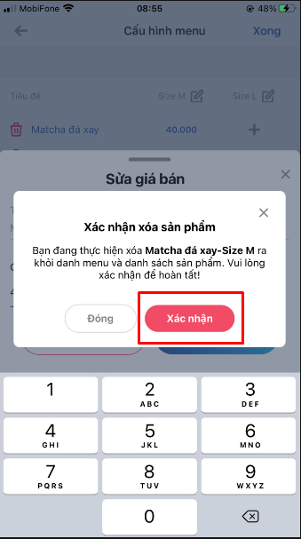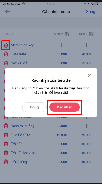 >> chọn nút "Xác nhận" để hoàn tất xóa menu.