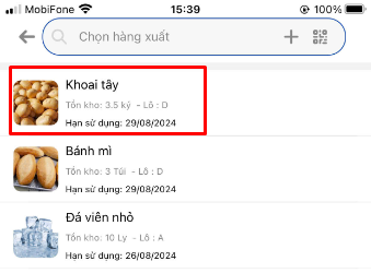 Lưu ý: Khi chọn mặt hàng xuất sẽ ưu tiên mặt hàng có hạn sử dụng gần nhất theo thứ tự từ trên xuống