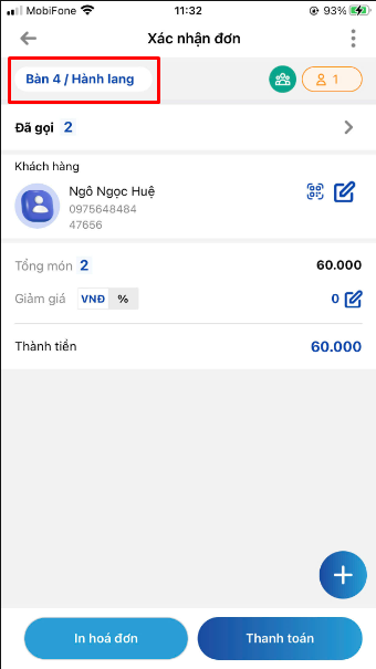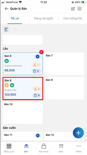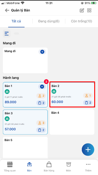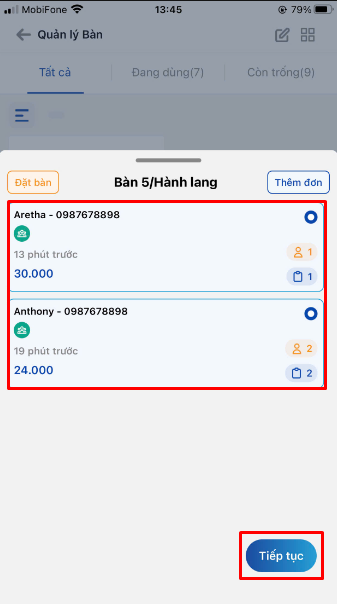 Bước 3: Xem bàn nhiều đơn. Tại đây bạn có thể thực hiện các chức năng: