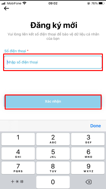 Nhập số điện thoại của bạn >> chọn nút "Xác nhận"