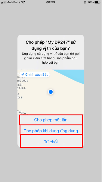 - Bước 2: Sau khi mở App: bạn chọn "Cho phép" nếu muốn nhận thông báo từ My DP247, hoặc "Từ chối" không nhận thông báo.
