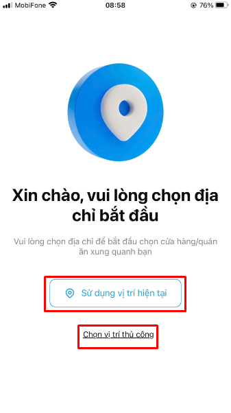 Chọn: "Sử dụng vị trí hiện tại" lấy vị trí hiện tại theo định vị hoặc chọn "vị trí thủ công": chọn theo vị trí bạn mong muốn