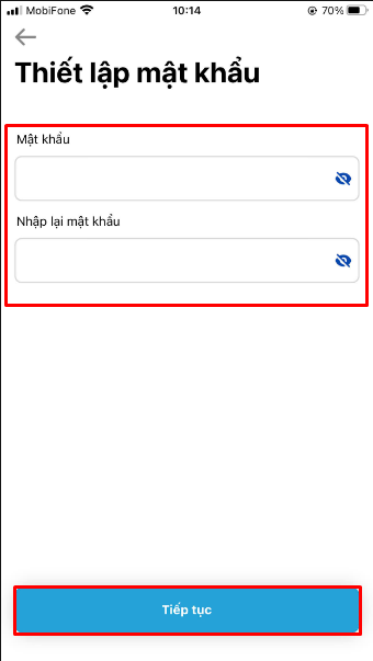 Nhập mật khẩu và nhập lại mật khẩu >> chọn nút "Tiếp tục"