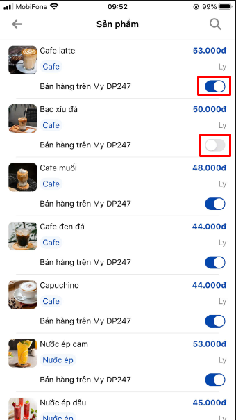 Cập nhật sản phẩm: bật/tắt sản phẩm hiển thị bán hàng trên My DP247