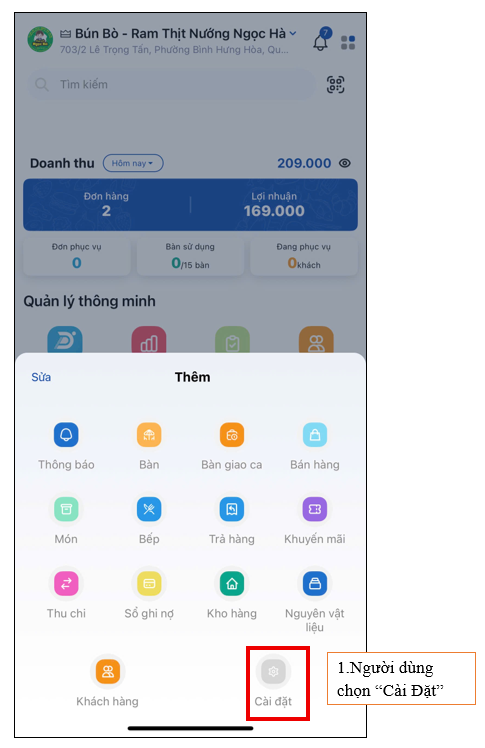 Bước 1. Tại giao diện chọn chức năng cài đặt