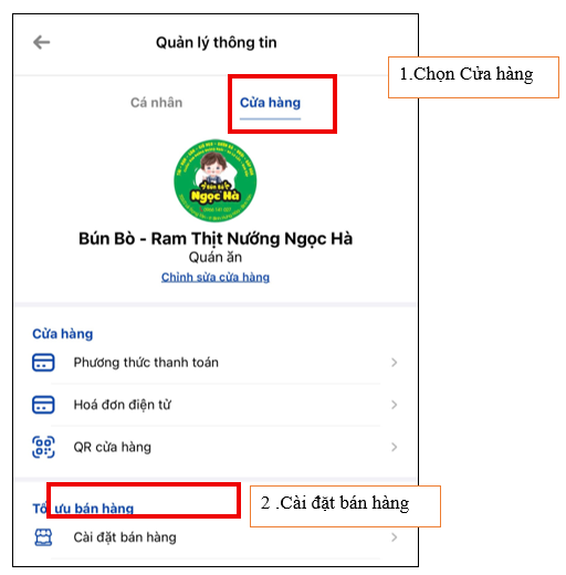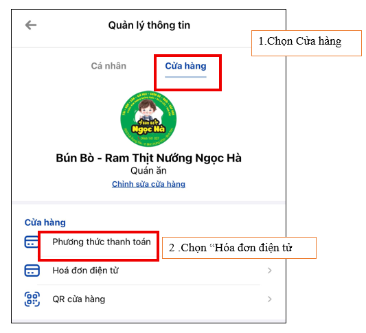 2. Tại mục cửa hàng , người dùng chọn “Hóa đơn điện tử”.