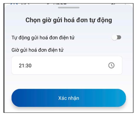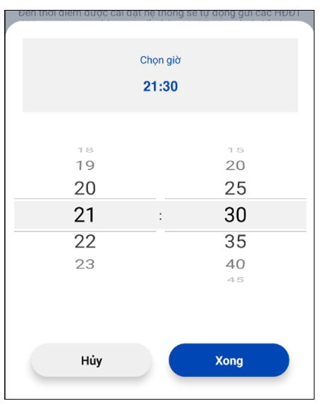 Khung chọn giờ gửi hóa đơn tự động hiện lên, người dùng có thể chọn vào thời gian để