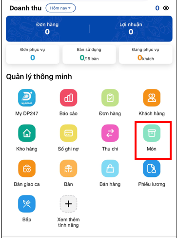 Bước 1. Vào Món/ Sản phẩm để cài đặt