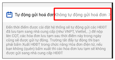 4. Để tự động gửi hóa đơn đến Cổng của nhà cung cấp HĐĐT, nhấn vào “Không tự động gửi hóa đơn”