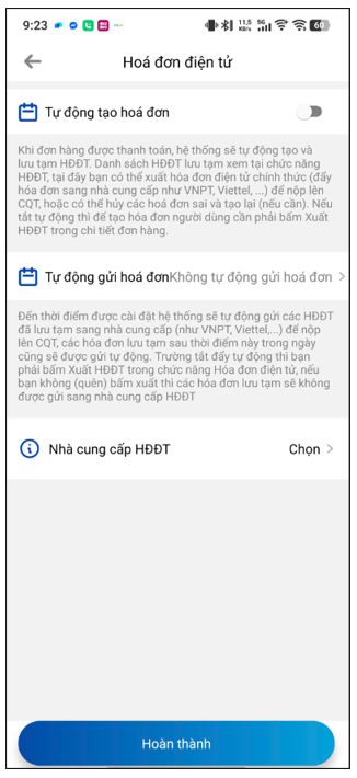 1. Trường hợp 1 có bật chức năng tạo hóa đơn tự động: