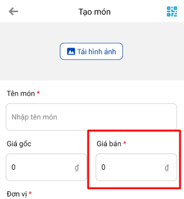 Lưu ý: Đối với 1 mặt hàng có chịu mức VAT. Khi tạo 1 mặt hàng, thông tin giá bán là giá đã bao gồm VAT.